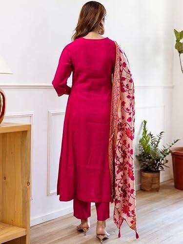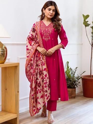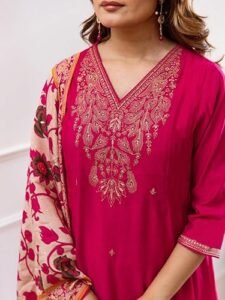 - Style :- Straight Kurta | Sleeve Length:- 3/4 Sleeve | Bottom :- Pant Includes a coordinated Straight kurta, ankle-length pants, and a stunning printed dupatta, offering a complete traditional look with minimal styling effort.